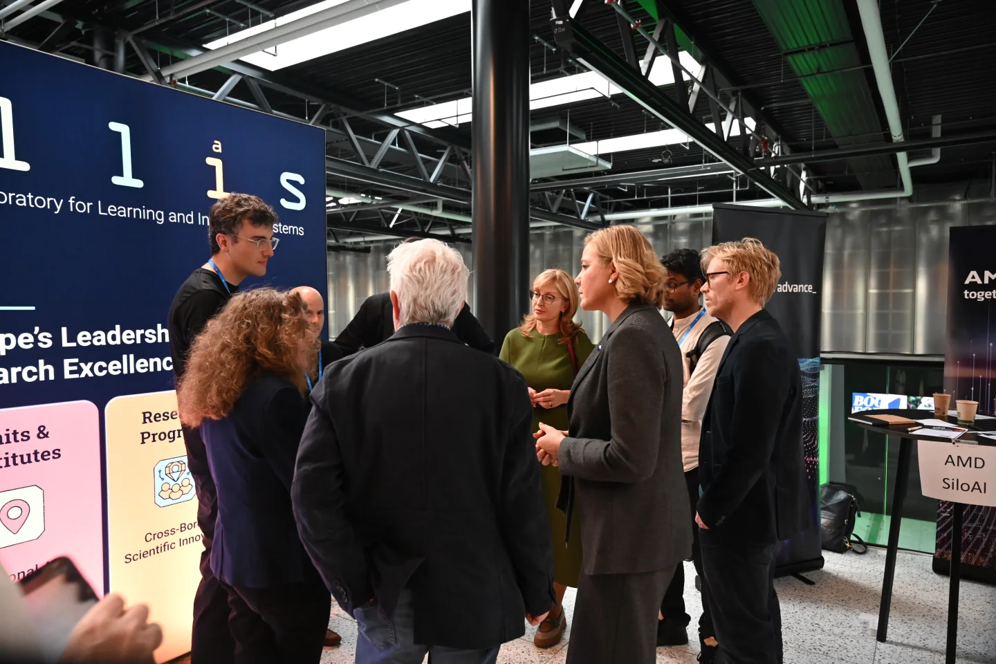 The Summit also facilitated exchanges between EU policymakers and leading researchers. Representatives of the ELIAS Alliance, including Matthias Bethge and Arnout Devos, as well as ELLIS Fellows Søren Hauberg (Technical University of Denmark), Antoine Bosselut, Anna Kreshuk (EMBL, ELLIS Scholar) and Nicu Sebe met with Henna Virkkunen (Executive Vice-President for Tech Sovereignty, Security and Democracy at the European Commission) and Ekaterina Zaharieva (Commissioner for Startups, Research and Innovation at the European Commision), discussing the need for greater speed, scale, and coordination in EU-wide innovation funding.