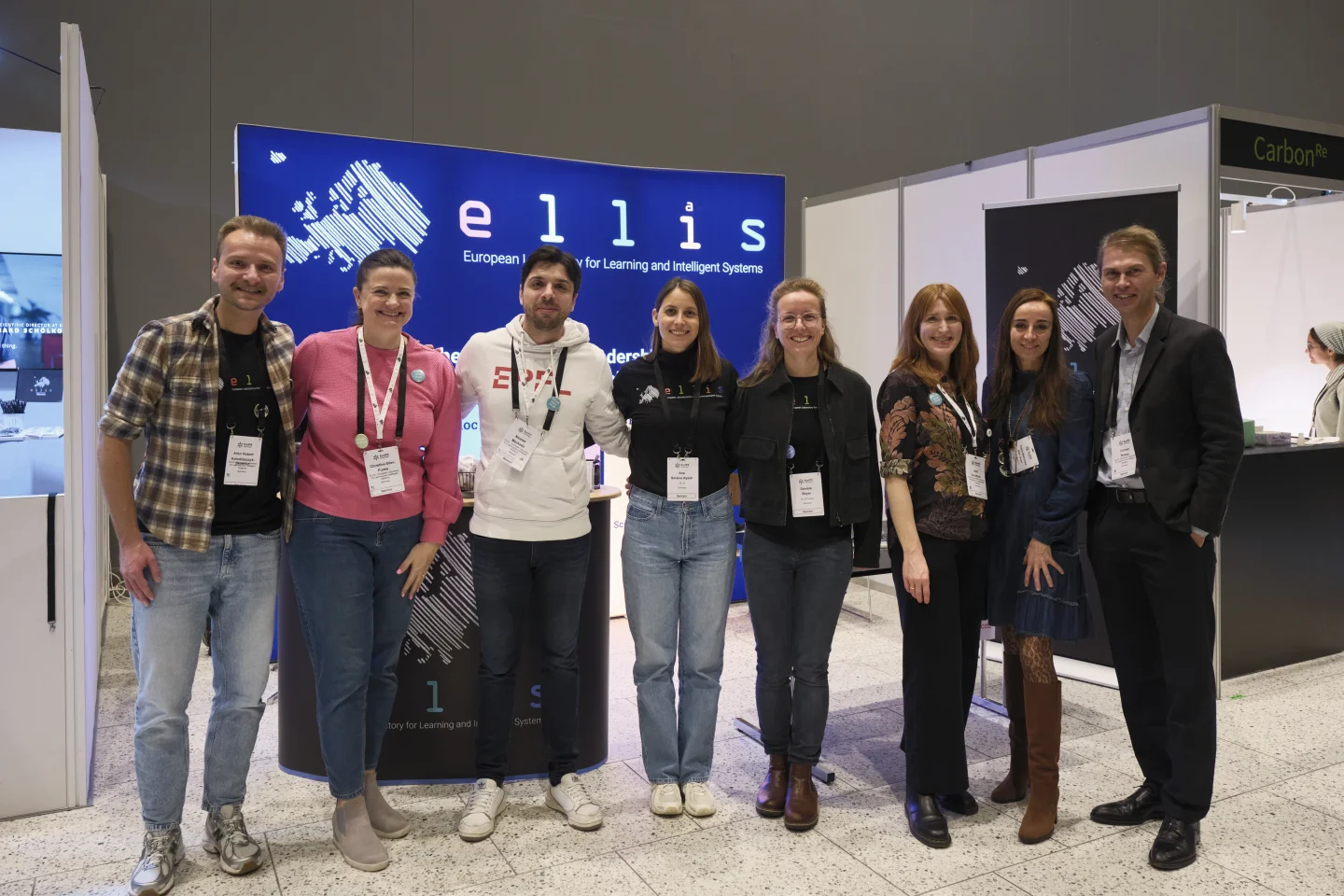 The booth also benefited from the invaluable support of several European ELLIS staff members, including ELLIS COO Celia Sánchez San Juan as well as ELLIS Unit Coordinators Ana Saraiva Ayash (Unit Lisbon), Artur Kołodziejczyk-Skowron (Unit Warsaw), Conrad Philipp (Unit Jena), Daniela Beyer (Unit Heidelberg), and Nicolas Machado (Unit Lausanne), ensuring a welcoming, well-coordinated presence throughout the week and helping attendees learn more about the ELLIS network, and engage with ELLIS initiatives.