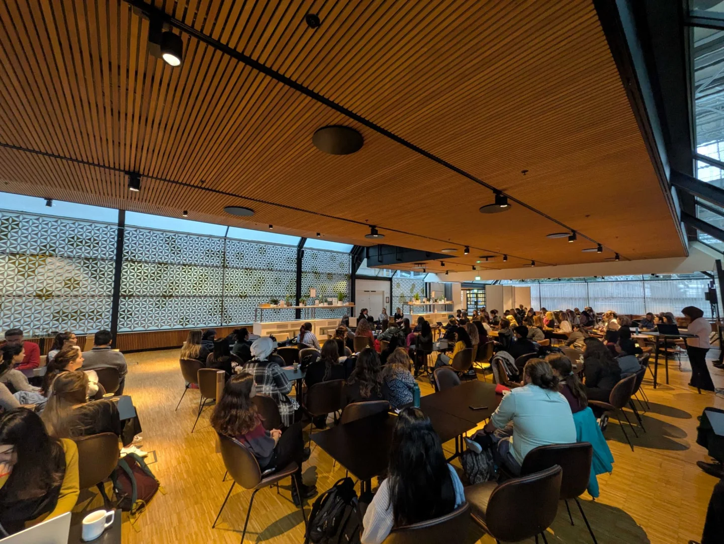 In the afternoon, attention shifted to an open poster session, providing researchers an additional stage to present work published in top journals and conferences throughout 2025. With 129 accepted posters presented in a single-track format, the session became one of the most animated moments of the week, fostering in-depth discussion across fields and career stages. The day concluded with a welcome reception, transforming the venue into a dense network of conversations that continued throughout the week and formally marked the start of EurIPS.