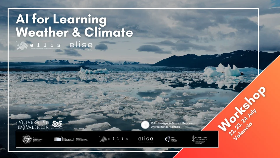 Camps-Valls is a member of the organizing committee of the ““ELLIS/ELISE AI for Learning Weather and Climate” workshop that is held from July 22-24 in Valencia (Spain). International scientists and experts in AI and Machine Learning meet to discuss recent advances in AI for weather prediction, climate emulation and Earth system modeling. The conference is held under the framework of ELLIS (European Laboratory for Learning and Intelligent Systems) and the EU-funded ELISE project (European Network of AI Excellence Centres), which allows international collaboration and interdisciplinarity to be articulated. Scientists from the Technical University of Munich, CERN, University of Bologna, German Space Agency (DLR), and INRIA will participate, among others.